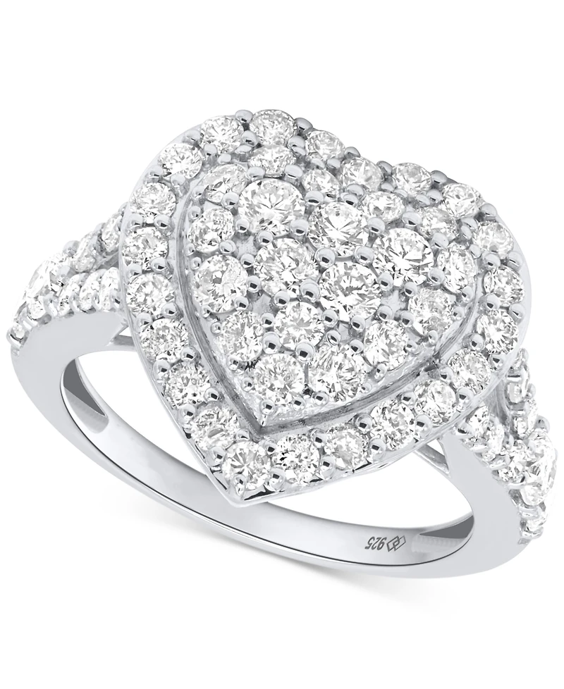 Forever Grown Diamonds Lab Diamond Heart Halo Cluster Ring (2 ct. t.w.) Sterling Silver or 14K Gold-Plated
