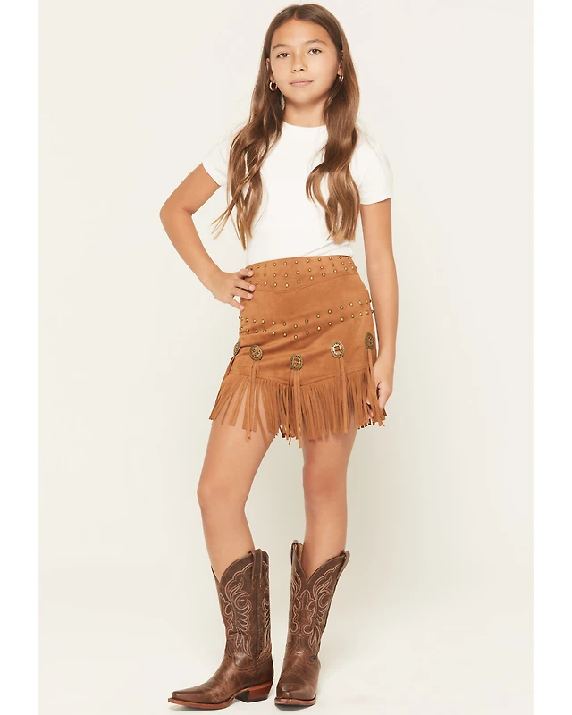 Fornia Girls' Faux Suede Fringe Skirt