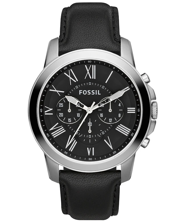 Fossil Men's Chronograph Grant Black Leather Strap Watch 44mm FS4812