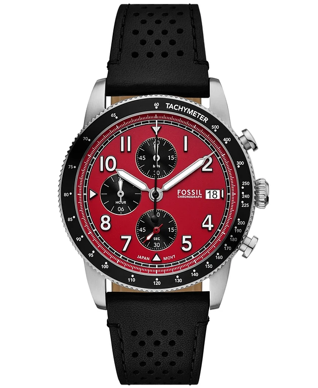 Fossil Men's Sport Tourer Chronograph Black Leather Watch, 42mm