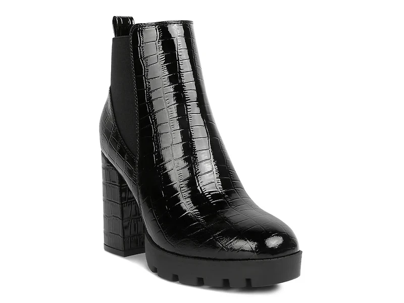 Bring a sleek touch to your layered look with the London Rag Foxy boot. This Chelsea-inspired pair sports a croc printed design, bold block heel, and chunky platform that combine trend-right touches with timeless streestyle for a captivating add to your wardrobe.