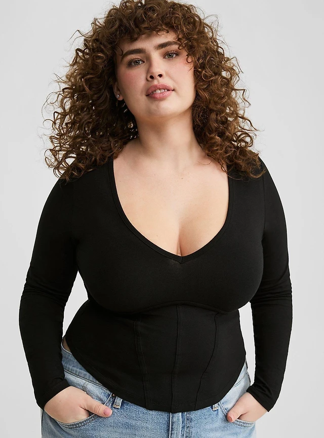 Foxy Off Shoulder Mesh Long Sleeve Corset Top