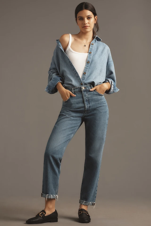 Maeve Scallop-Edge High-Rise Wide-Leg Jeans