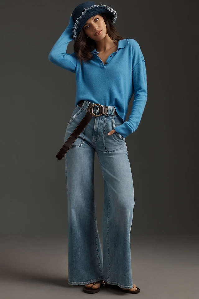 Maeve Scallop-Edge High-Rise Wide-Leg Jeans