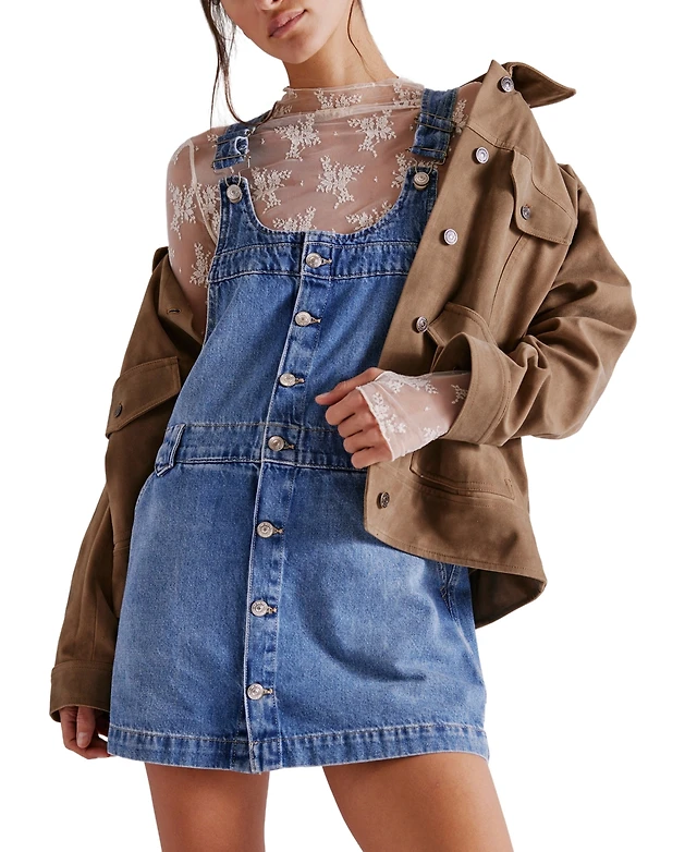 Free People Women's Edie Denim Cotton Overalls Dress
