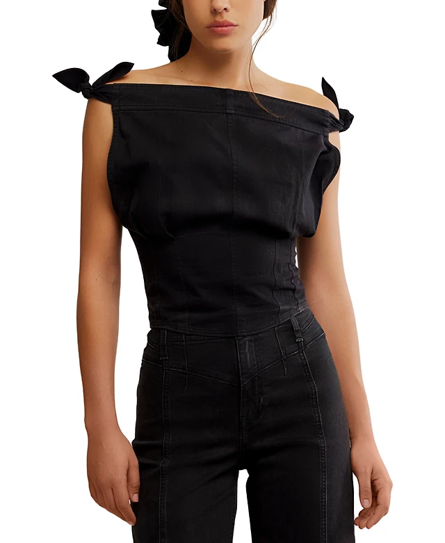 Free People Women's Louie Cotton Denim Tie-Shoulder Top