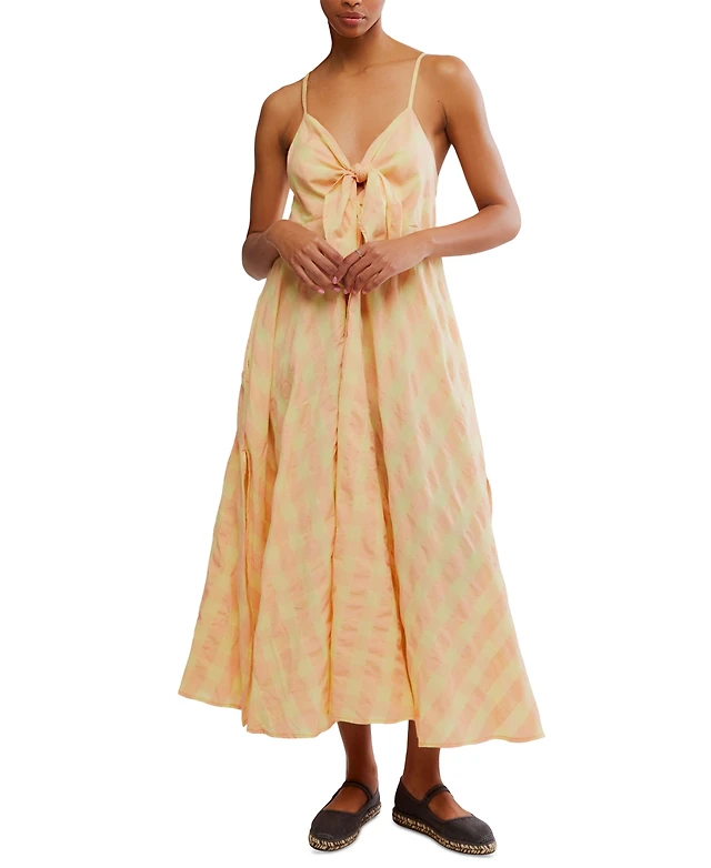 Free People Women's Via Printed Cotton Sleeveless Midi Dress