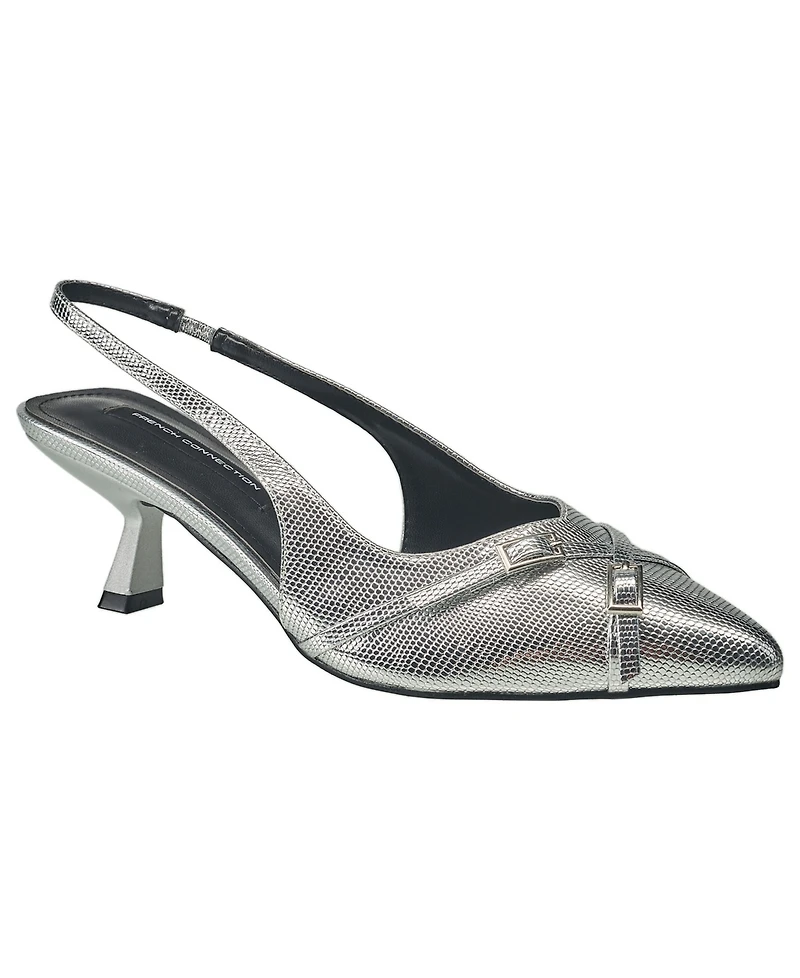 French Connection Women's Buckles Slingback Kitten Heel