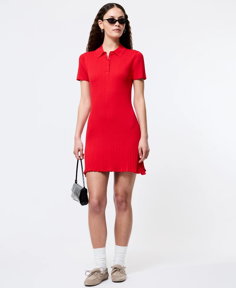 French Connection Women's Ribbed Polo-Collar Mini Dress