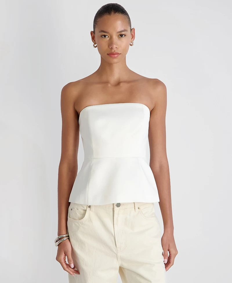 Making a bold impression, this York top by French Connection showcases a strapless silhouette that creates a clean, elongated line. A back zipper offers a smooth structure and confident wear.