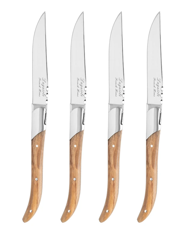 French Home Laguiole Set of 4 Connoisseur Steak Knives with Olive Wood Handles