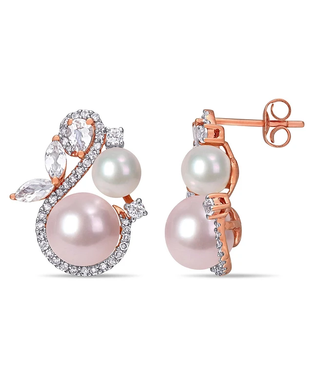 Freshwater Cultured Pearl (5.5-8.5mm), White Topaz (1 1/8 ct. t.w) and Diamond (1/3 ct. t.w.) Swan Earrings in 10k Rose Gold