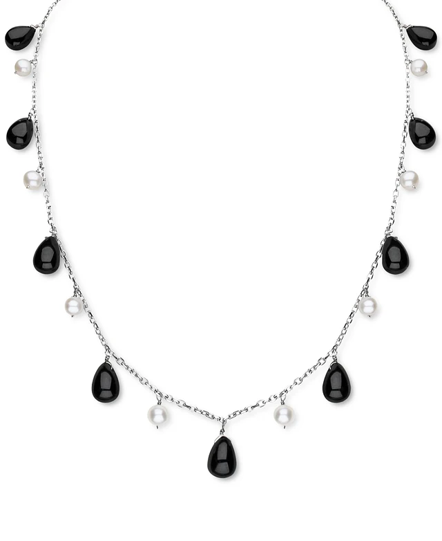 Effy Freshwater Pearl (6-1/2mm), and Onyx 18" Collar Necklace in 14k Gold