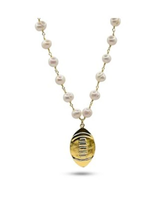 Freshwater Pearl Necklace With Gold Plated Football Charm