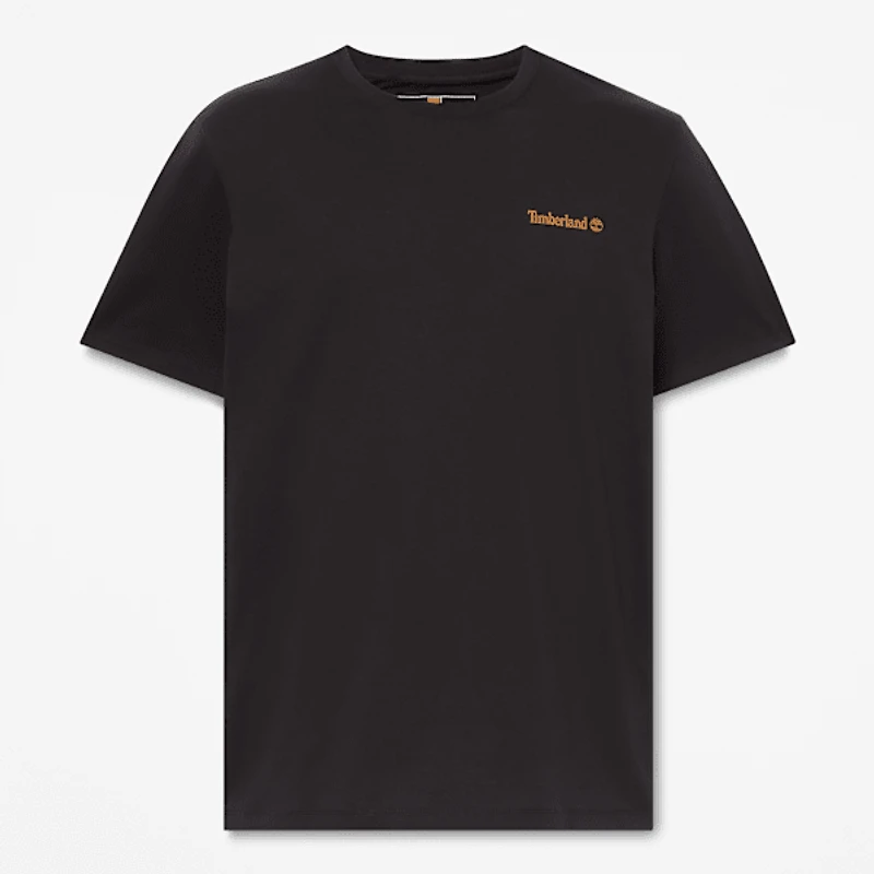 An everyday cotton t-shirt with Timberland edge. This comfortable crewneck short-sleeve features our wordmark logo on the front and the embroidered Tree logo on the back.