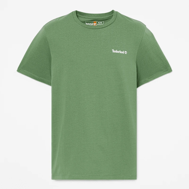 An everyday cotton t-shirt with Timberland edge. This comfortable crewneck short-sleeve features our wordmark logo on the front and the embroidered Tree logo on the back.