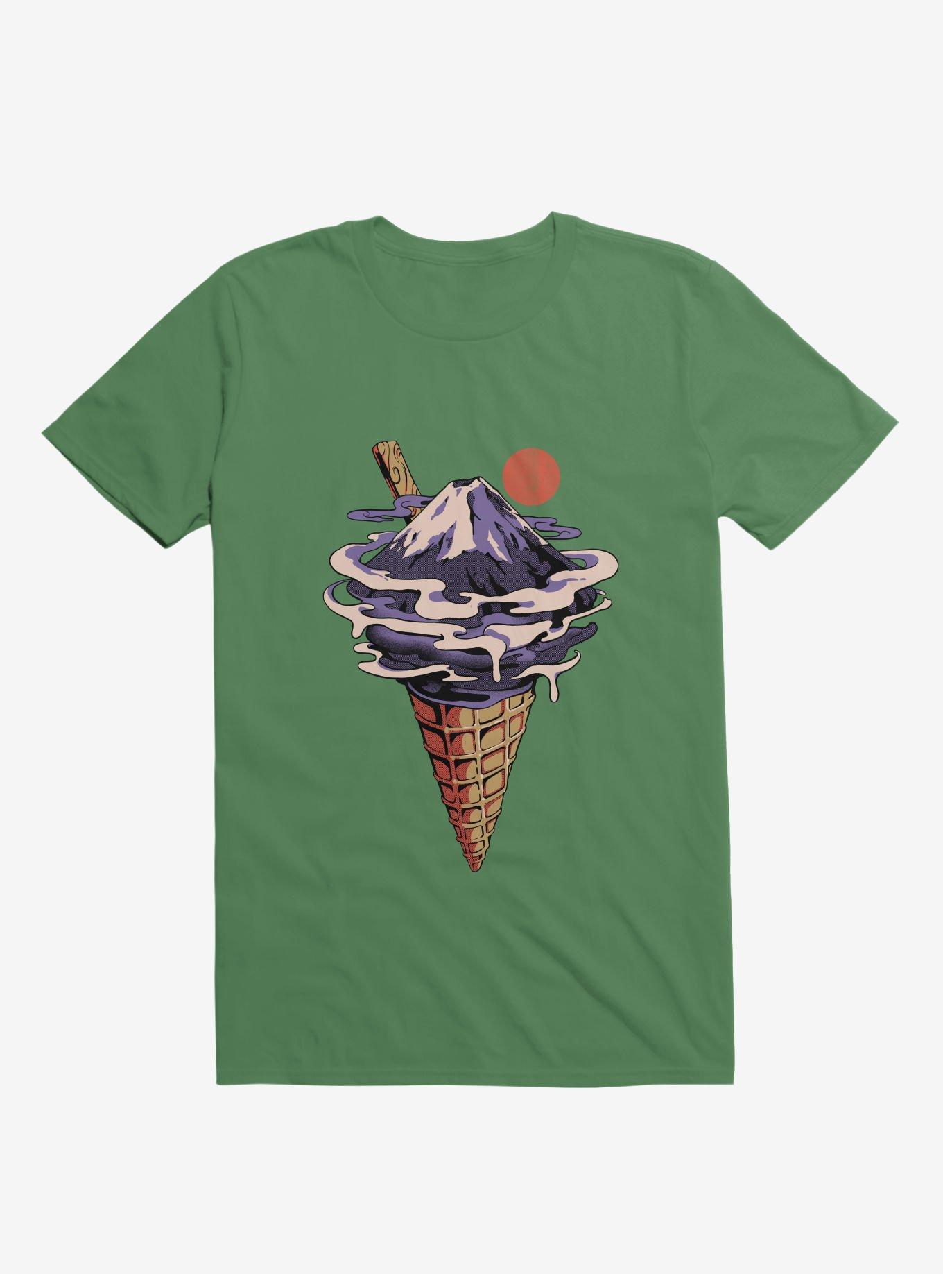 Vanilla? Sooo basic. Next time you're grabbing an ice cream, ask for a scoop of everybody's favorite new flavor - Mt. Fuji. Yep! This lightweight Irish green tee imagines the iconic Japanese mountain in a waffle cone. Officially licensed art from ilustrata.