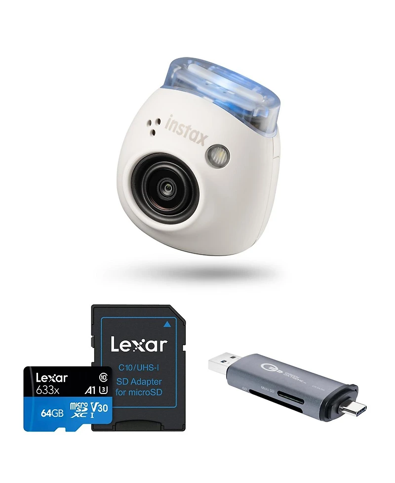Fujifilm Instax Pal Digital Camera, Powder Pink, Bundle with 64GB Memory Card and Otg Reader