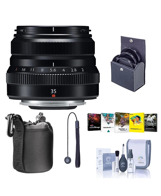 Fujifilm Xf 35mm f/2 R Wr Lens, Black, Bundle with 43mm Filter Kit, Lens Case, Cleaning Kit, Lens Cap Tether, Pc Software Kit