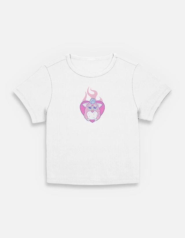 Furby Fire Heart Womens Tie-Dye Crop T-Shirt