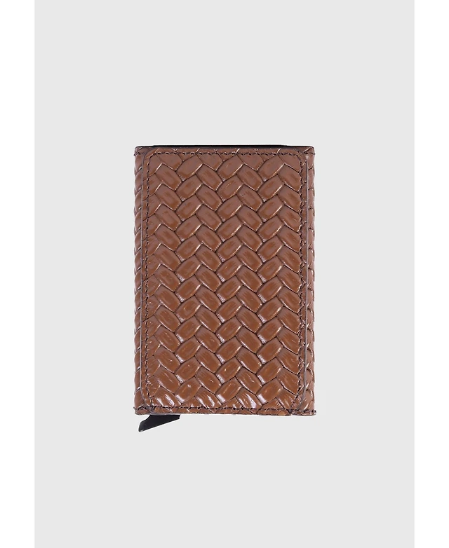 Furniq Uk Men's Genuine Leather Weave Pattern Card Holder