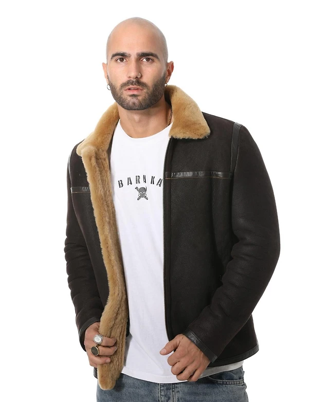 Furniq Uk Men's Leather Banded Sheepskin Casual Jacket