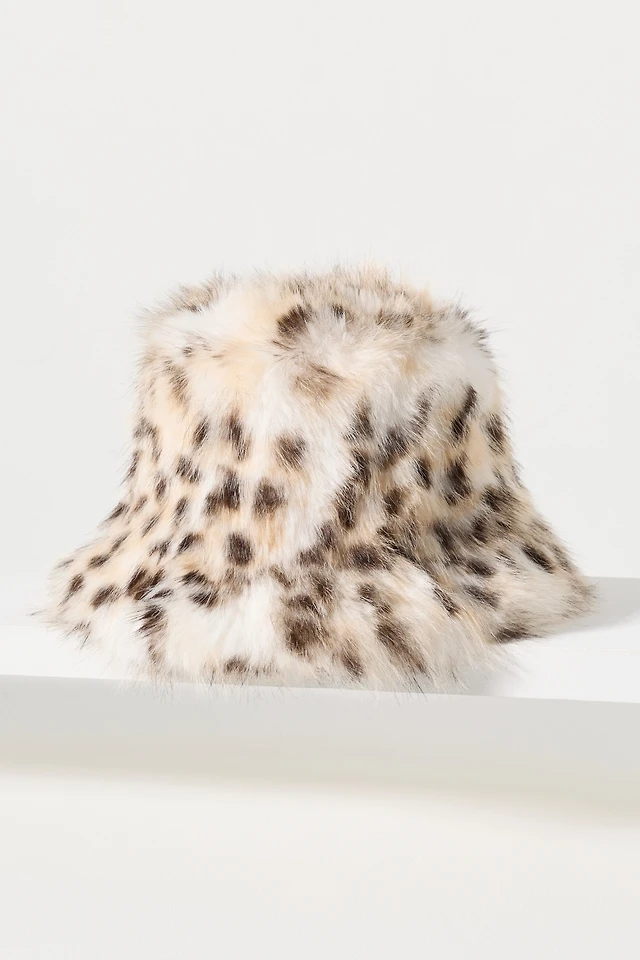 Fuzzy Faux Fur Animal Print Bucket Hat