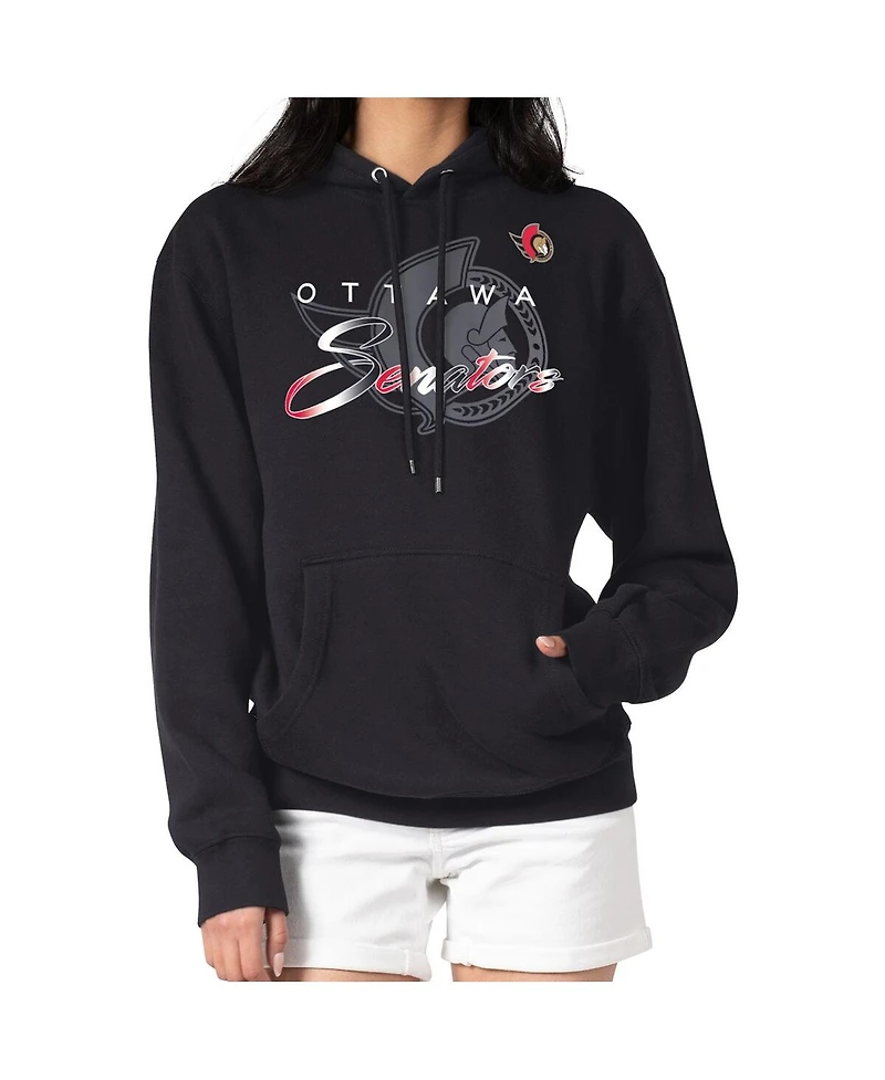 G-iii 4Her by Carl Banks Men's Black Ottawa Senators Shadow Logo Fleece Pullover Hoodie