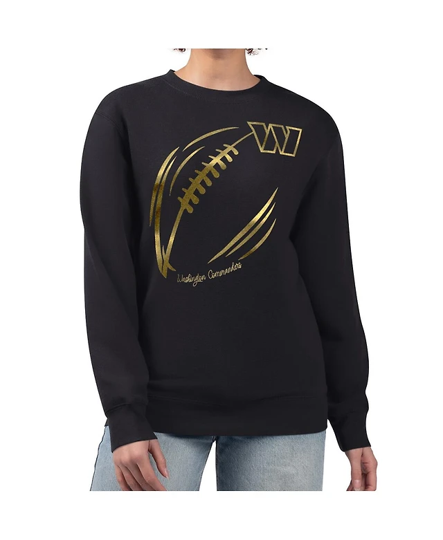 G-iii 4Her by Carl Banks Women's Black/Gold Washington Commanders Metallic Print Football Sketch Fleece Crewneck Sweatshirt