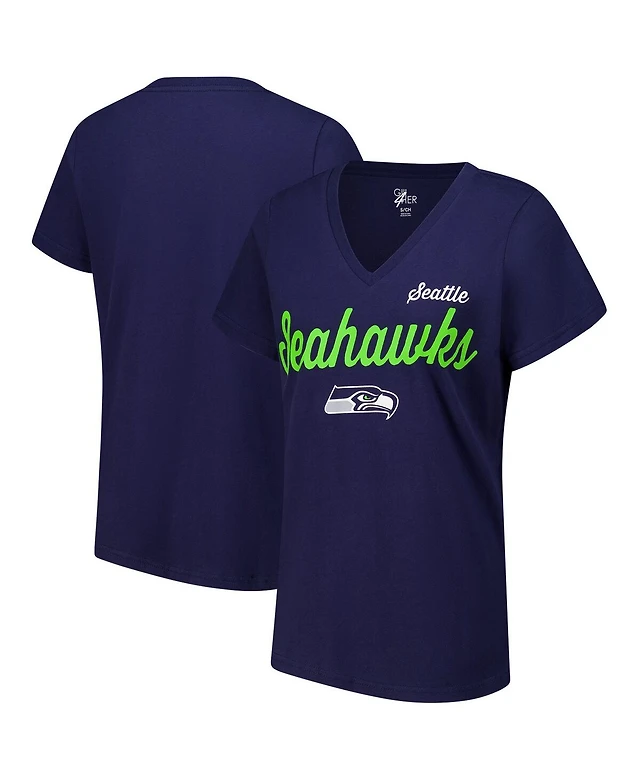 G-iii 4Her by Carl Banks Women's College Navy Seattle Seahawks Post Season V-Neck T-Shirt