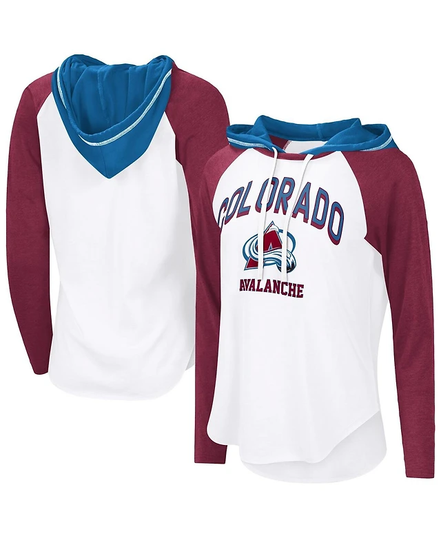G-iii 4Her by Carl Banks Women's White Colorado Avalanche Vip Raglan Long Sleeve Hoodie T-Shirt