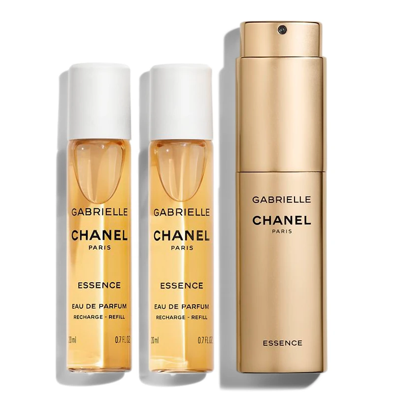 GABRIELLE CHANEL ESSENCE T AND S 6.408OZ. Composition: The scent is a solar, voluptuous interpretation crafted by CHANEL In-House Perfumer Creator Olivier Polge.. Like a fragrant nectar, the floral composition features 4 flowers: striking, intense jasmine; radiant, fruity ylang-ylang; fresh, sparkling orange blossom; and the most captivating of all, Grasse tuberose.. Creamy and highly feminine, this bloom is magnified and radiates throughout to create a warm, enveloping trail.. Key Notes: Jasmine. Ylang Ylang. Orange Blossom. Grasse Tuberose. Includes: GABRIELLE CHANEL ESSENCE Eau de Parfum Twist and Spray (3 x 0.7 oz).