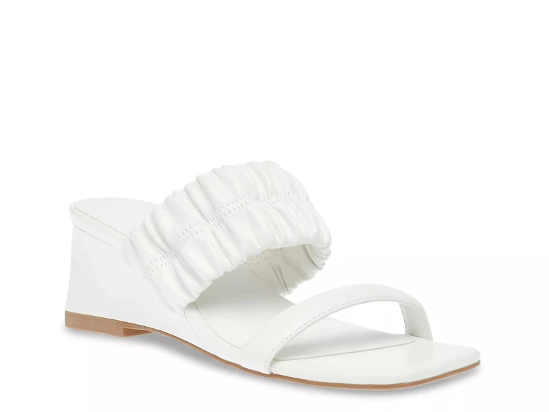 Looking for a sleek-chic style? Go for the Galle wedge sandal from Anne Klein. A two-piece upper comprising single toe band and elasticated instep strap and coordinating wedge make this square- toe sandal fashionable.