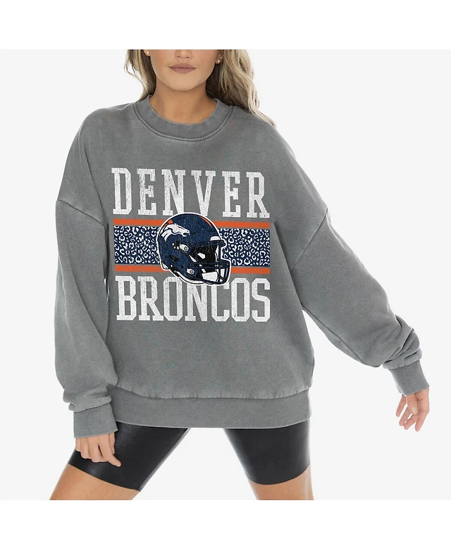 Gameday Couture Women's Gray Denver Broncos Vintage Wash Oversized Crewneck Fleece Pullover