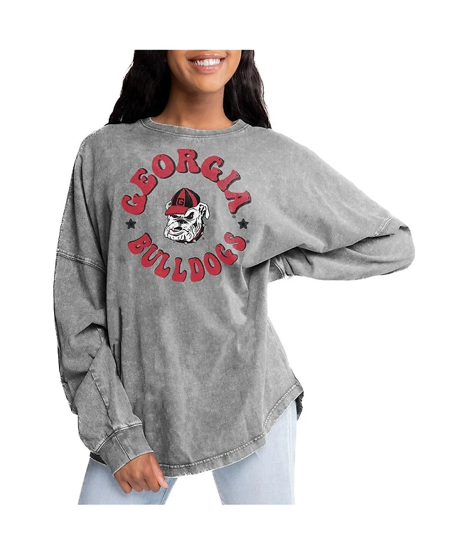 Gameday Couture Women's Gray Georgia Bulldogs Playing Around Faded Wash Oversized Long Sleeve T-Shirt