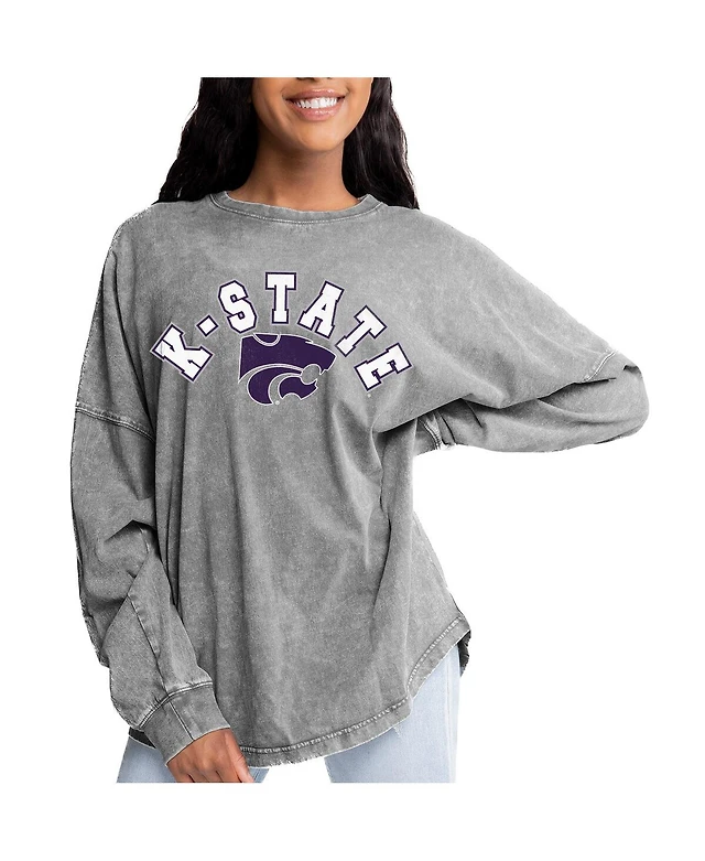 Gameday Couture Women's Gray Kansas State Wildcats Faded Wash Pullover Sweatshirt