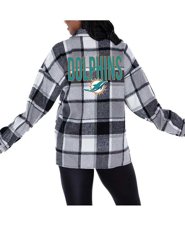 Gameday Couture Women's Gray Miami Dolphins Fieldside Fun Plaid Button-Up Overshirt