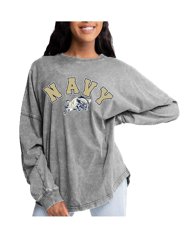 Gameday Couture Women's Gray Navy Midshipmen Faded Wash Pullover Sweatshirt