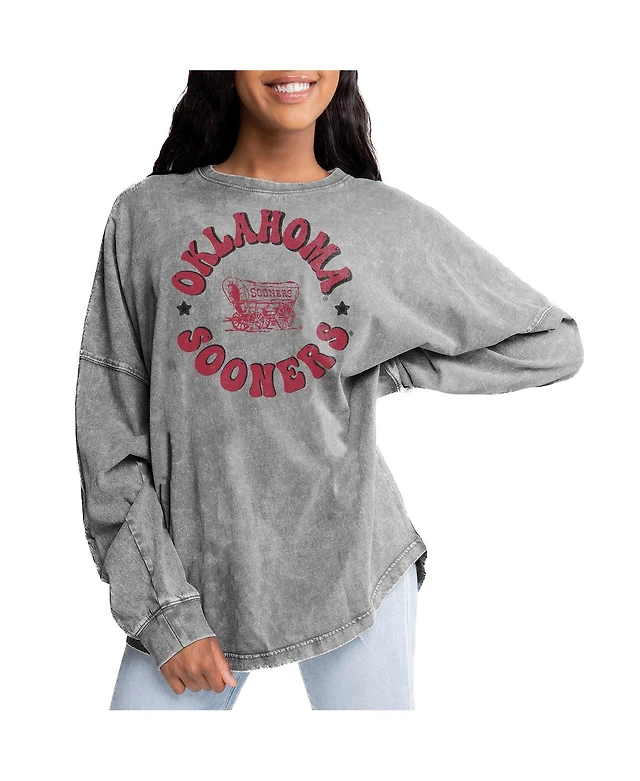 Gameday Couture Women's Gray Oklahoma Sooners Playing Around Faded Wash Oversized Long Sleeve T-Shirt