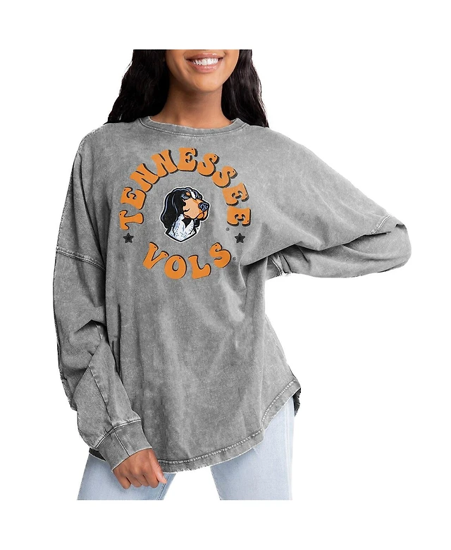 Gameday Couture Women's Gray Tennessee Volunteers Playing Around Faded Wash Oversized Long Sleeve T-Shirt