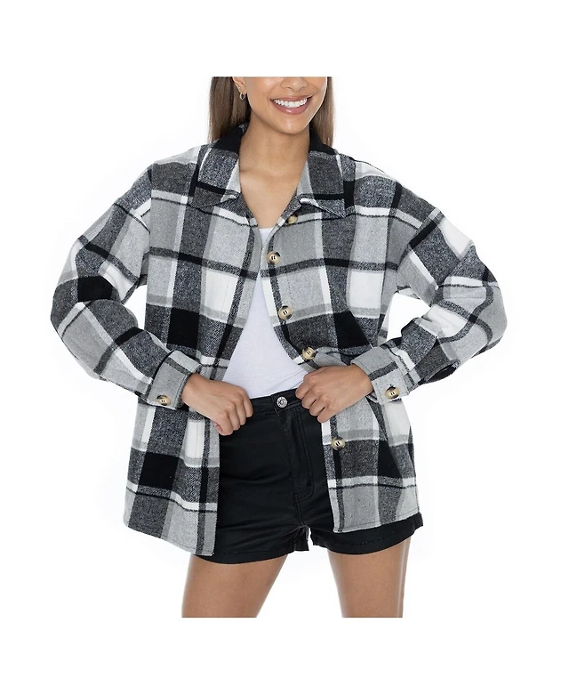 Gameday Couture Women's Grey Kansas Jayhawks Long Sleeve Brushed Plaid Button-Up Overshirt Jacket