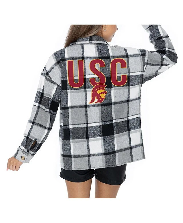 Gameday Couture Women's Grey Usc Trojans Long Sleeve Brushed Plaid Button-Up Overshirt Jacket