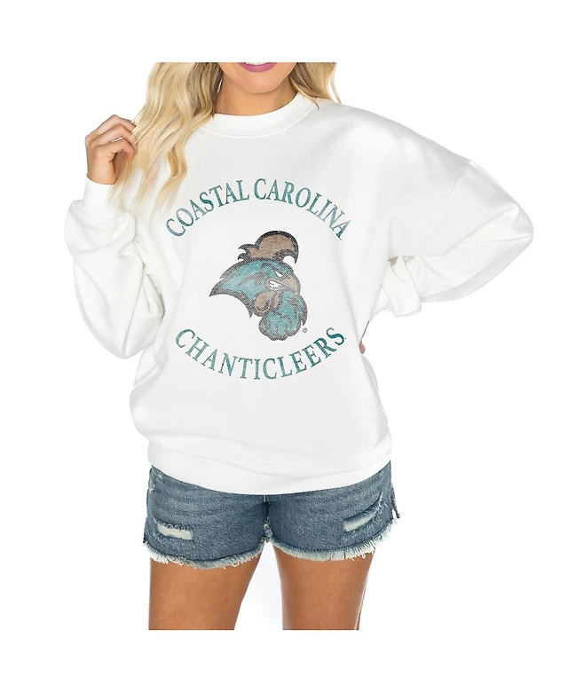 Gameday Couture Women's White Coastal Carolina Chanticleers Good Vibes Premium Fleece Drop Shoulder Pullover Sweatshirt