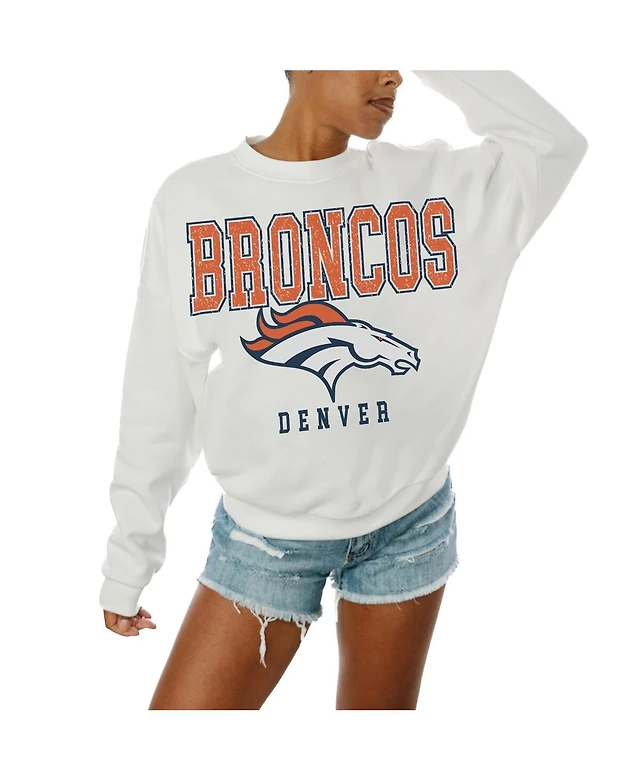 Gameday Couture Women's White Denver Broncos Sunday Drives Oversized Crewneck Pullover Sweatshirt