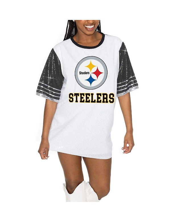 Gameday Couture Women's White/Black Pittsburgh Steelers Bling It Full Sequin Jersey Dress