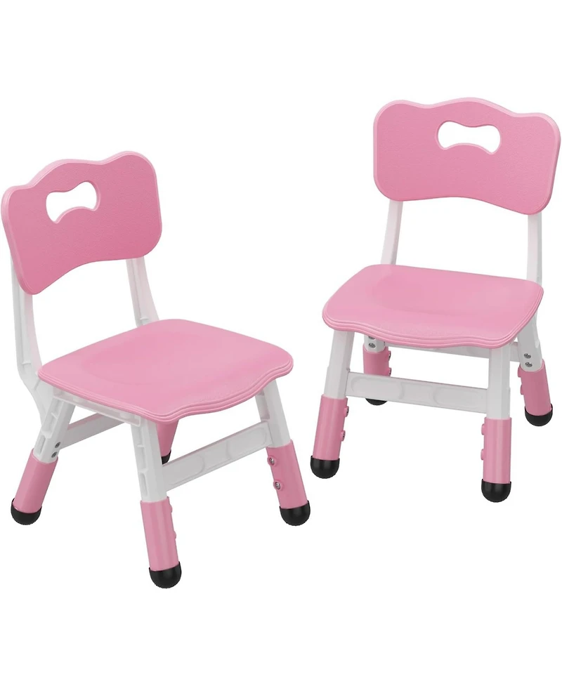 The Adjustable Kids Chair set includes two chairs that can be easily adjusted to three different heights: 10.6"", 11.4"", and 12.2"". This feature ensures that the chairs grow with your child, accommodating ages 2-8 and supporting up to 180 lbs, making them perfect for various settings from home to daycare.Crafted with children's comfort in mind, these chairs boast a specially designed backrest that promotes healthy posture and spinal alignment. Your child can enjoy hours of study or play without discomfort Equipped with non-slip foot covers, these chairs provide stability and safety on any surface.Lightweight and easy to carry, they can be moved effortlessly from room to room, making them ideal for both indoor and outdoor use Constructed from high-quality polypropylene, these chairs are not only sturdy but also designed with soft, rounded corners to prevent injuries. They are built to withstand the rigors of daily use, making them a reliable choice for families and schools alike.