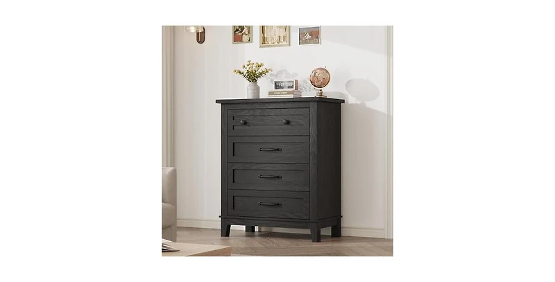 4 Dresser for Bedroom, 34.8" Tall Vertical Drawer Dresser with Large Storage, Freestanding Wooden Closet Chest for Bedroom, Living Room