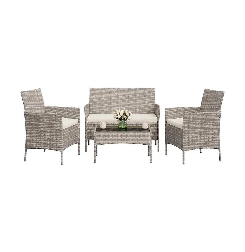 Transform your outdoor area with this 4-piece patio furniture set, including a loveseat, two chairs, and a glass-top coffee table. Crafted with weather-resistant wicker and soft cushions, it offers both durability and comfort. Perfect for gatherings or quiet moments, this set creates a stylish and functional seating arrangement for gardens, patios, or balconies.