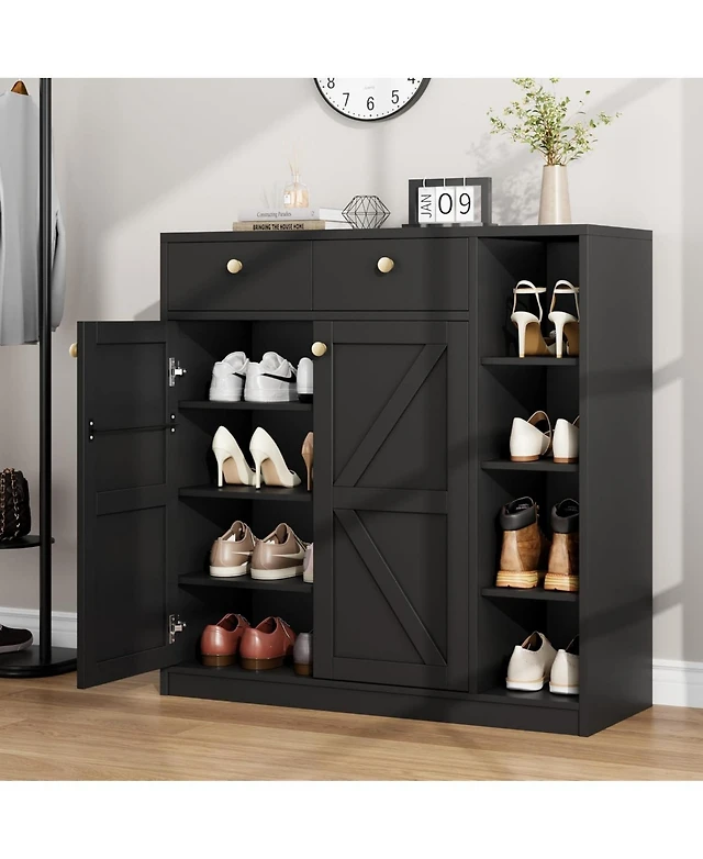 gaomon 42" Tall Modern Shoe Storage Cabinet with Doors and Drawers,3 Adjustable Shelves and Stable Base, 4-Tier Shoes Rack Organizer Cabinet, Black