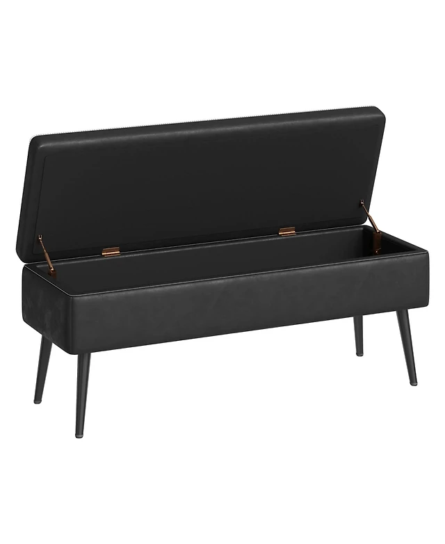 Songmics Home Mid-Century Modern Storage Ottoman Bench with Steel Legs, Black